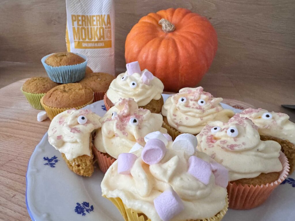 Polevou ozdobíme vychladnuté muffiny. Muffiny môžeme ešte dozdobiť kúskami čokolády, semienkami alebo inou jesennou dekoráciou.