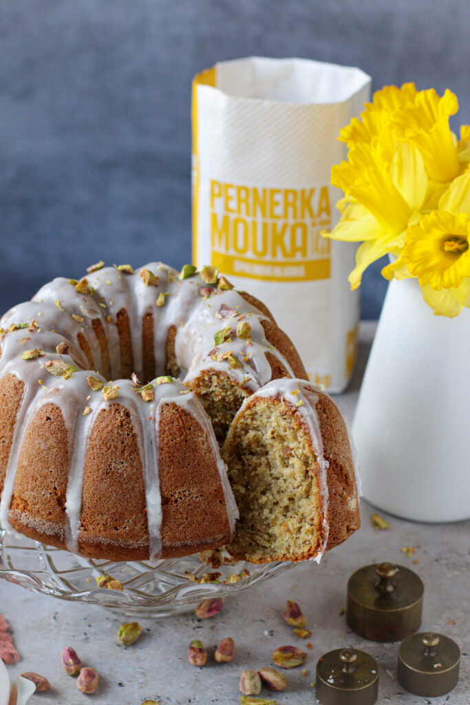 Bábovku môžete ozdobiť citrónovou polevou, ktorú pripravíte z čerstvej citrónovej šťavy a práškového cukru. Môžeme ju tiež posypať nasekanými pistáciami.